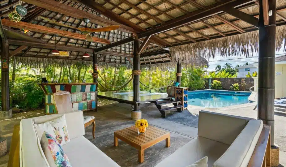 - un coin lecture avec une chaise de jardin confortable et un parasol ;